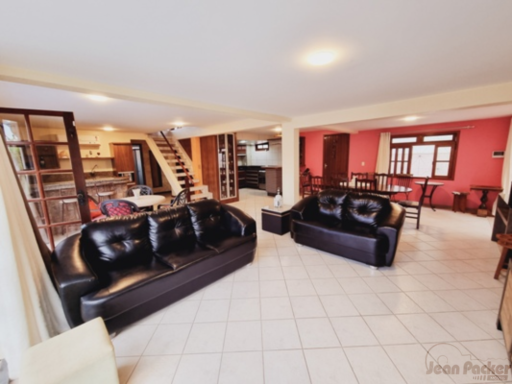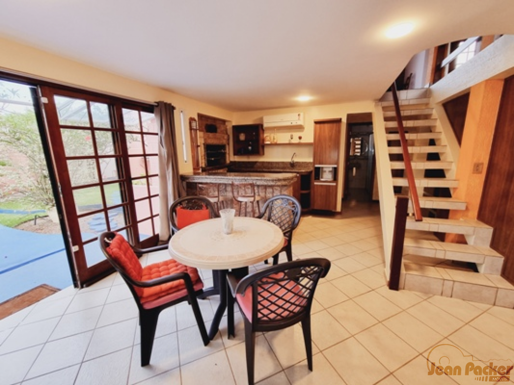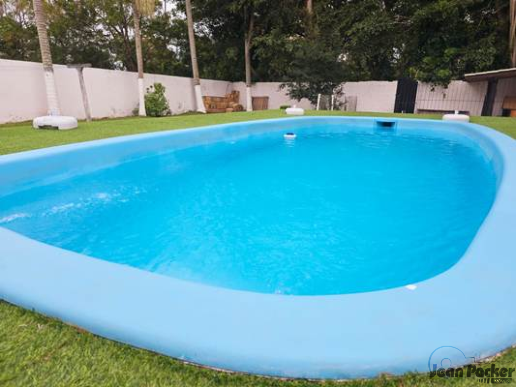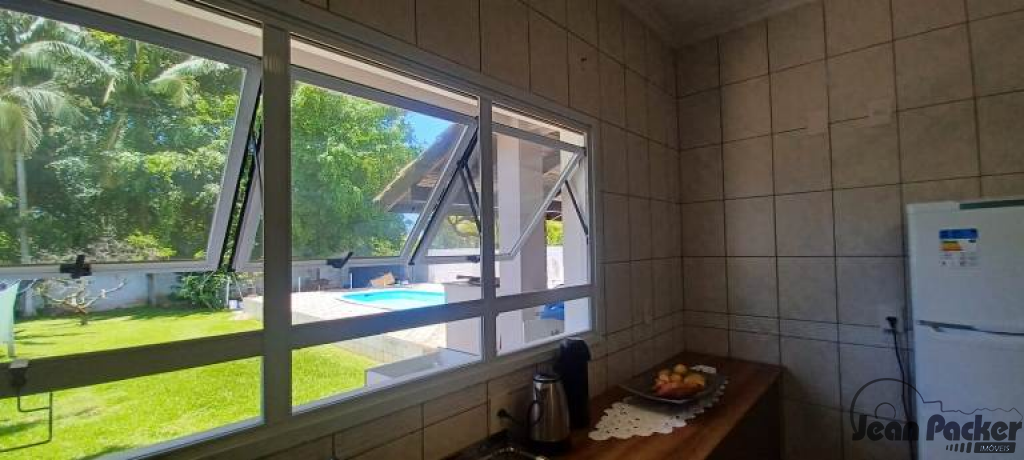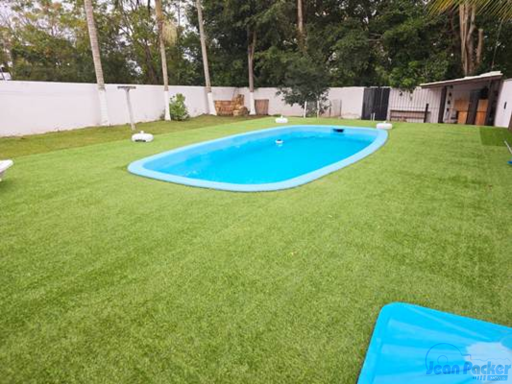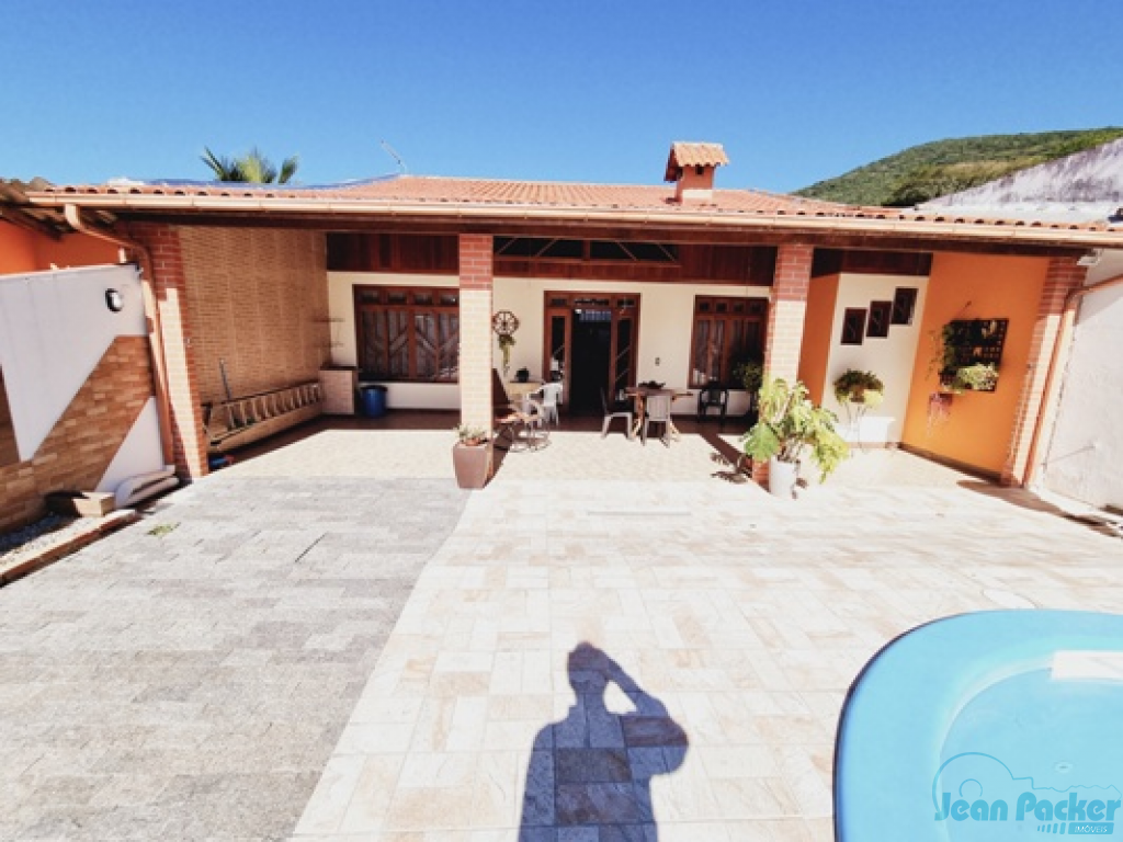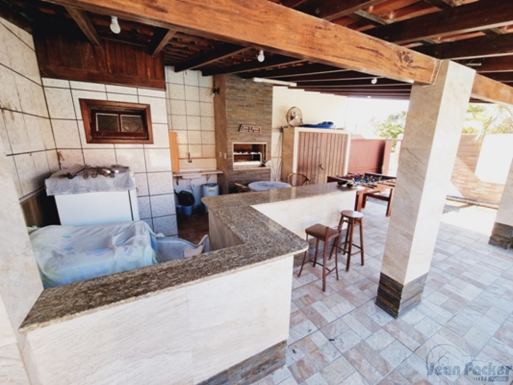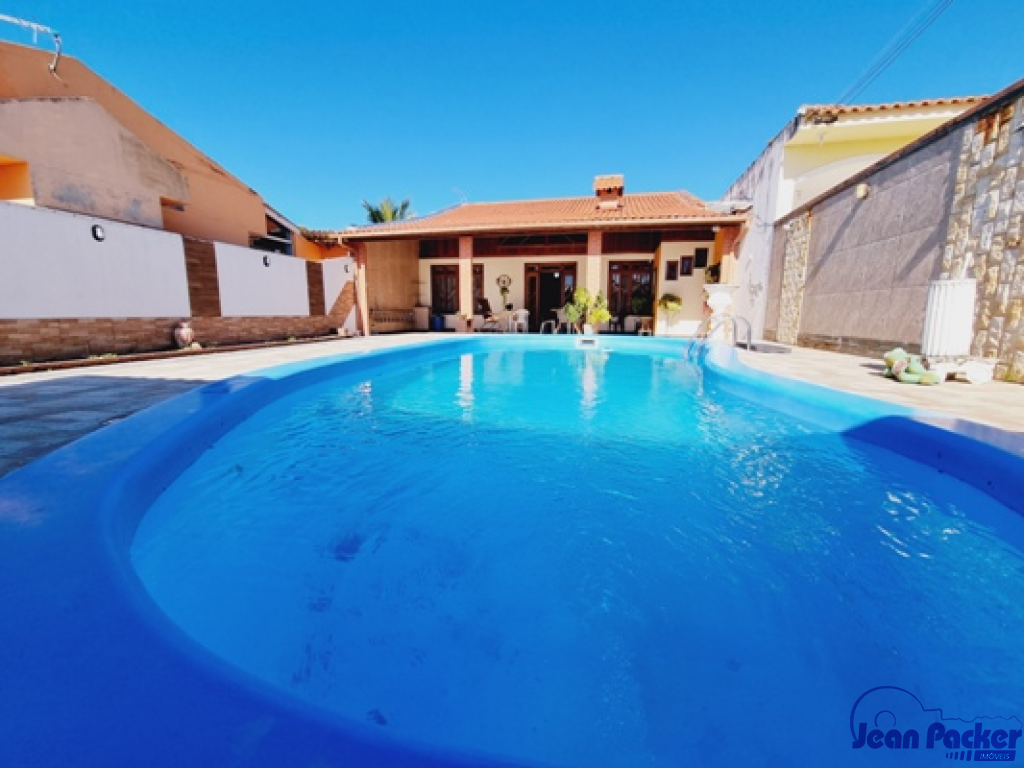 Linda residência mobiliada, com ampla sala com lareira, 2 dormitórios (1 suíte), banheiro social, cozinha, dispensa, piscina + edícula na frente com churrasqueira e banheiro, vagas para vários automóveis. Escritura pública, não aceita financiamento bancário. A pouca distância da praia.