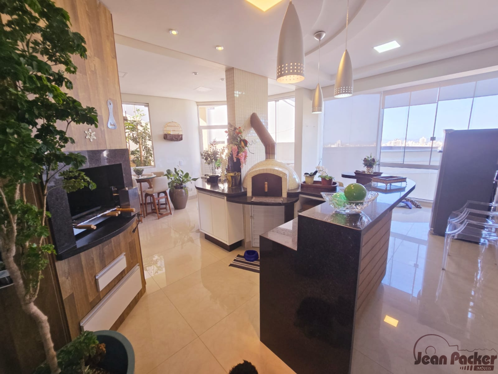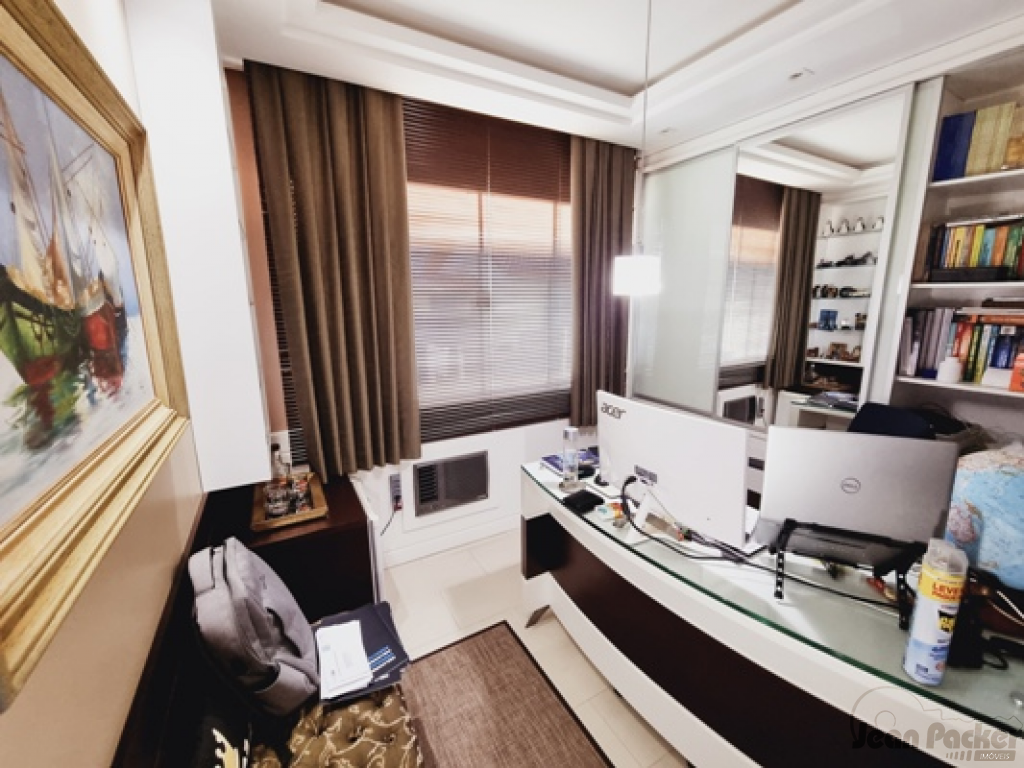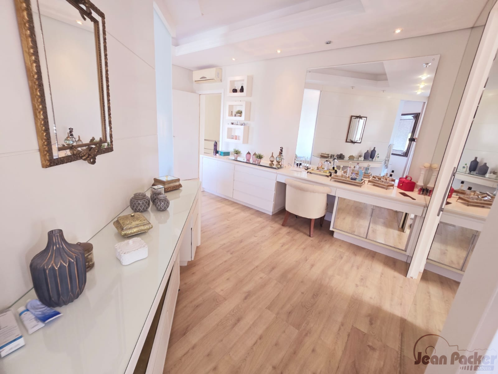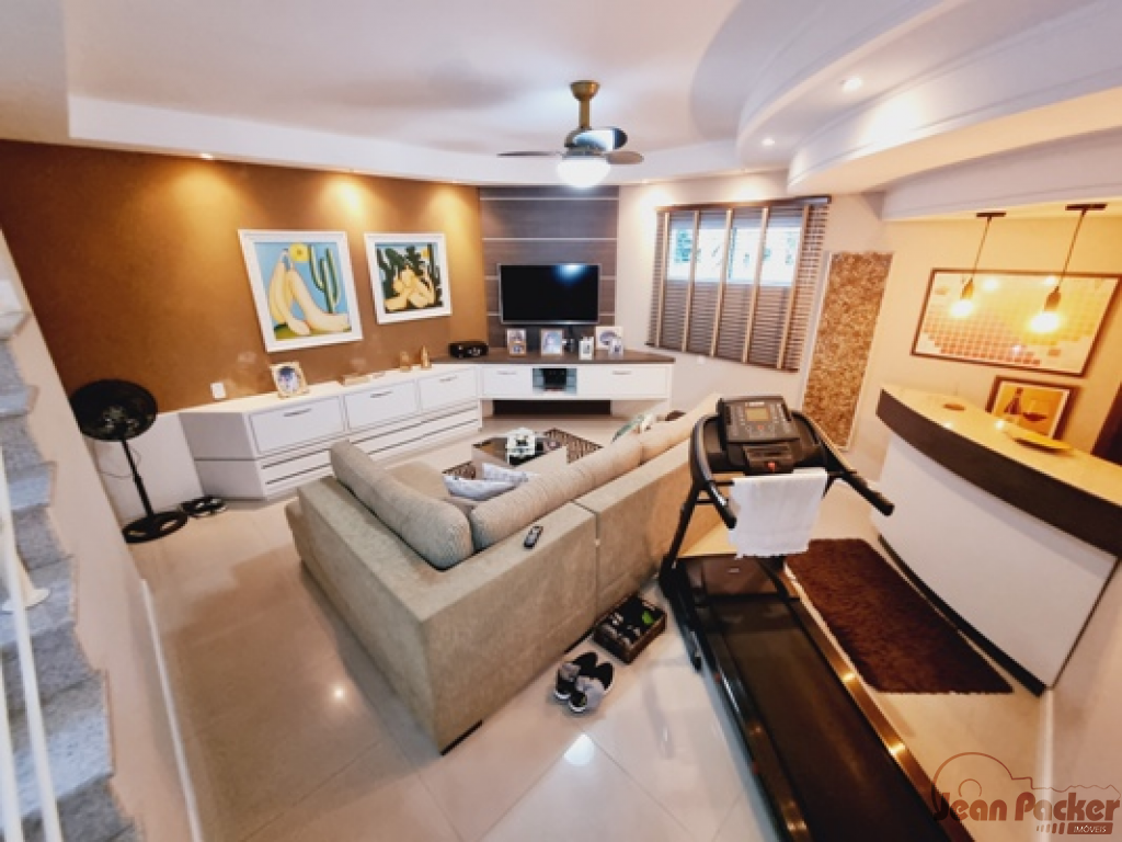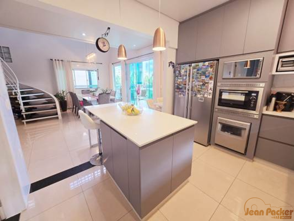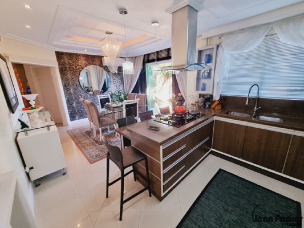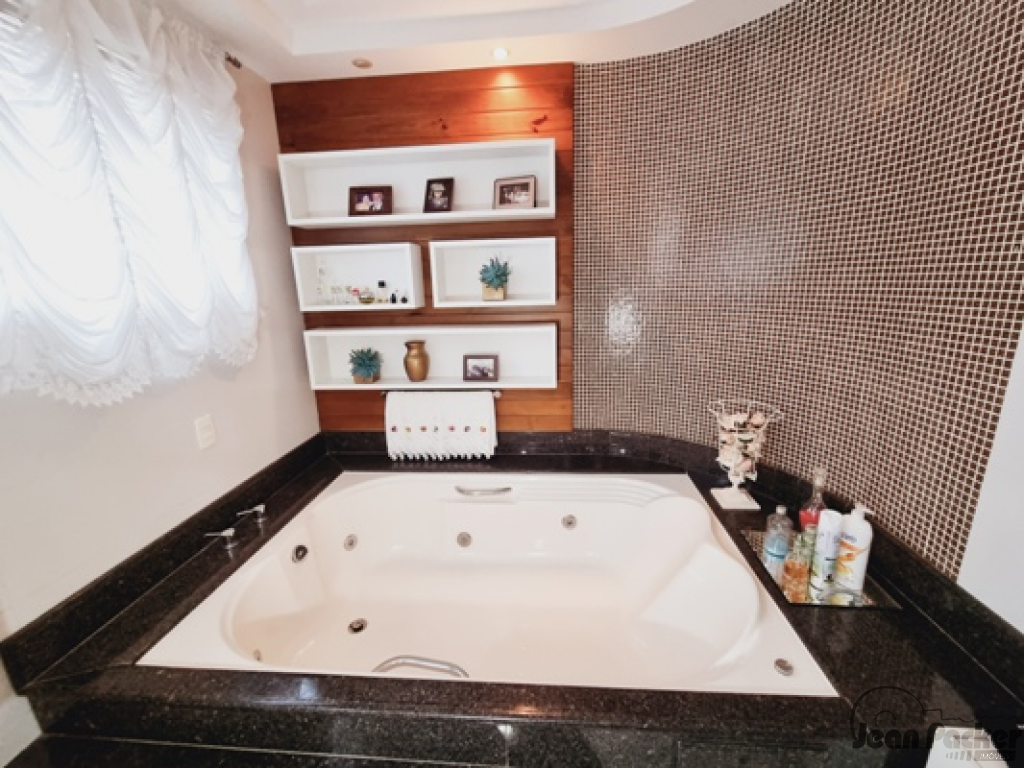 Sala ampla com 90m2 para 3 ambientes, estar, jantar e tv., 2 aparelhos condicionadores de ar - Cozinha ampla com ilha. Área de serviço com armários e despensa. Demi suíte/escritório com banheiro espaçoso. Hall de entrada cobertura de vidro. Varanda bem ampla em "L" com spa para 5 pessoas com filtragem de ozônio + churrasqueira a carvão com pia e bancada.