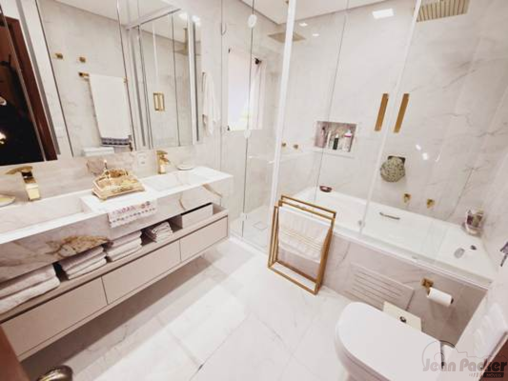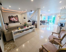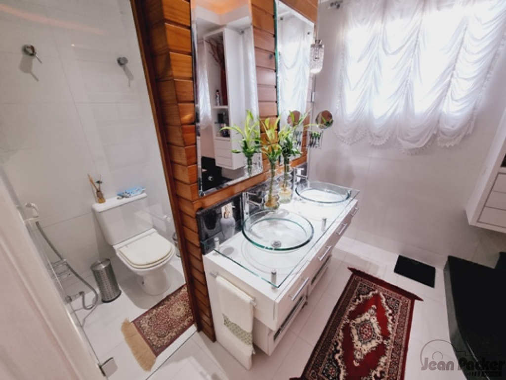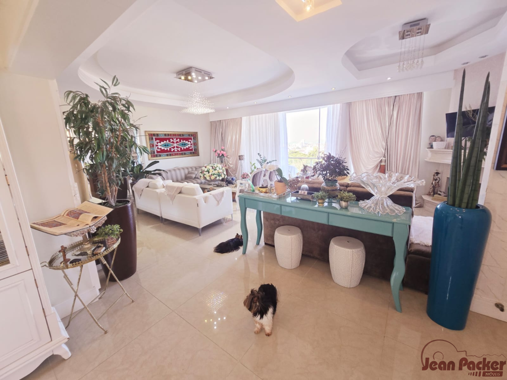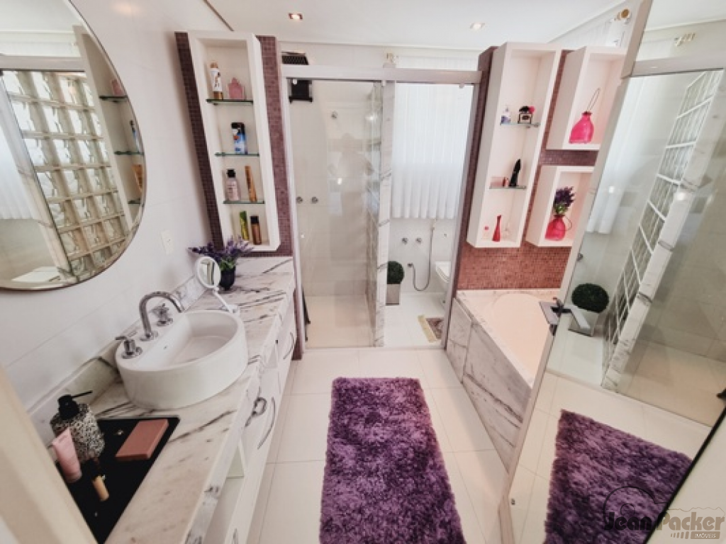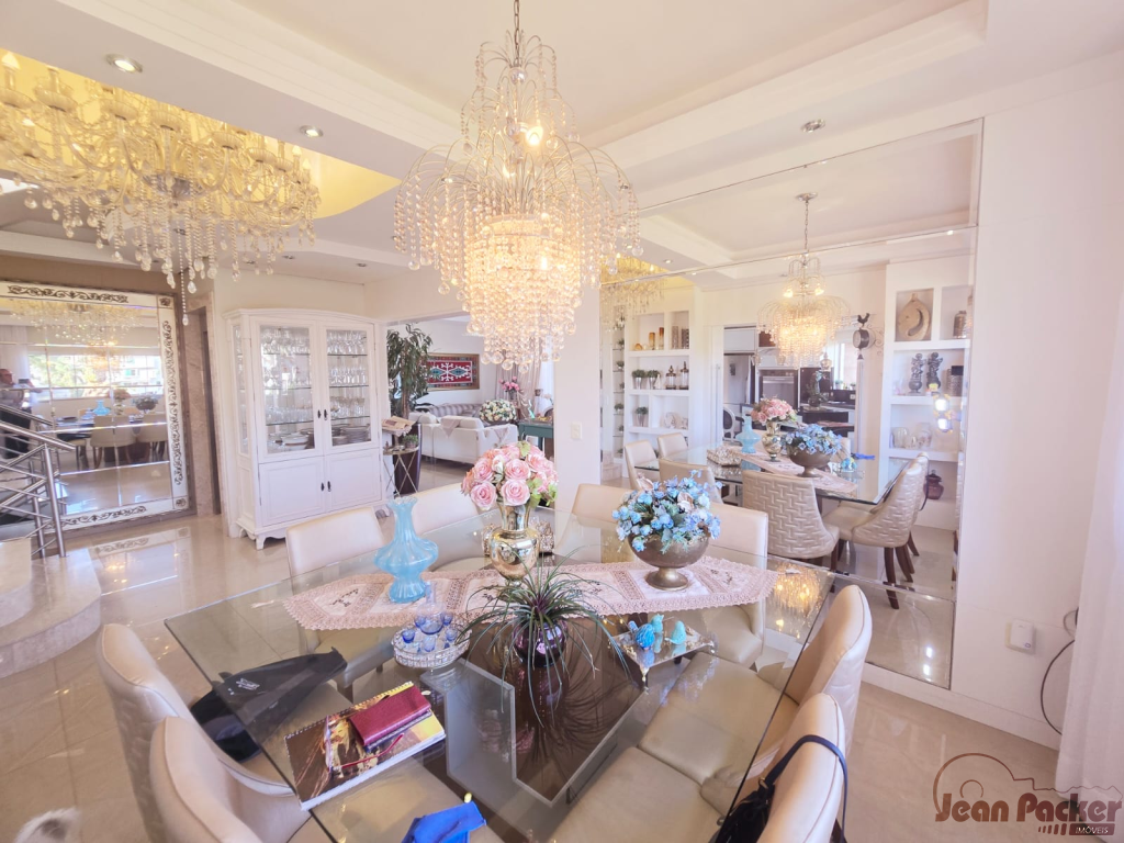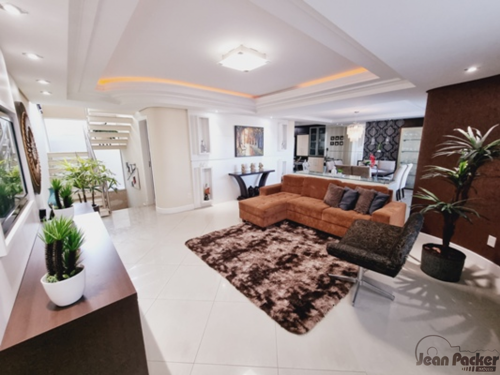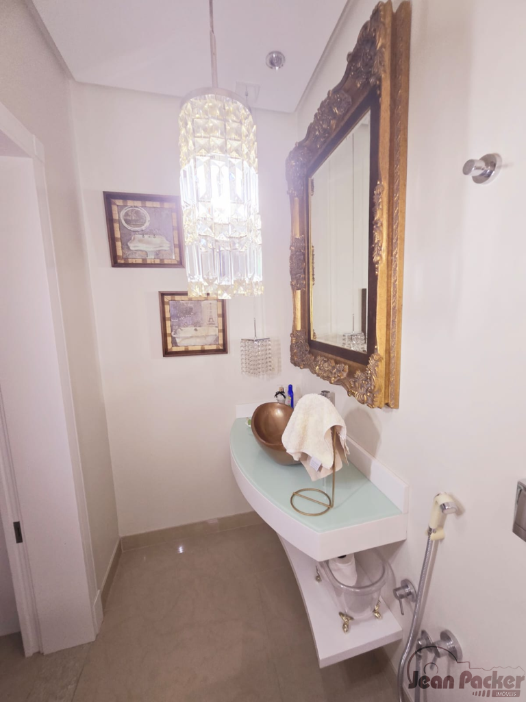 Sala ampla com 90m2 para 3 ambientes, estar, jantar e tv., 2 aparelhos condicionadores de ar - Cozinha ampla com ilha. Área de serviço com armários e despensa. Demi suíte/escritório com banheiro espaçoso. Hall de entrada cobertura de vidro. Varanda bem ampla em "L" com spa para 5 pessoas com filtragem de ozônio + churrasqueira a carvão com pia e bancada.